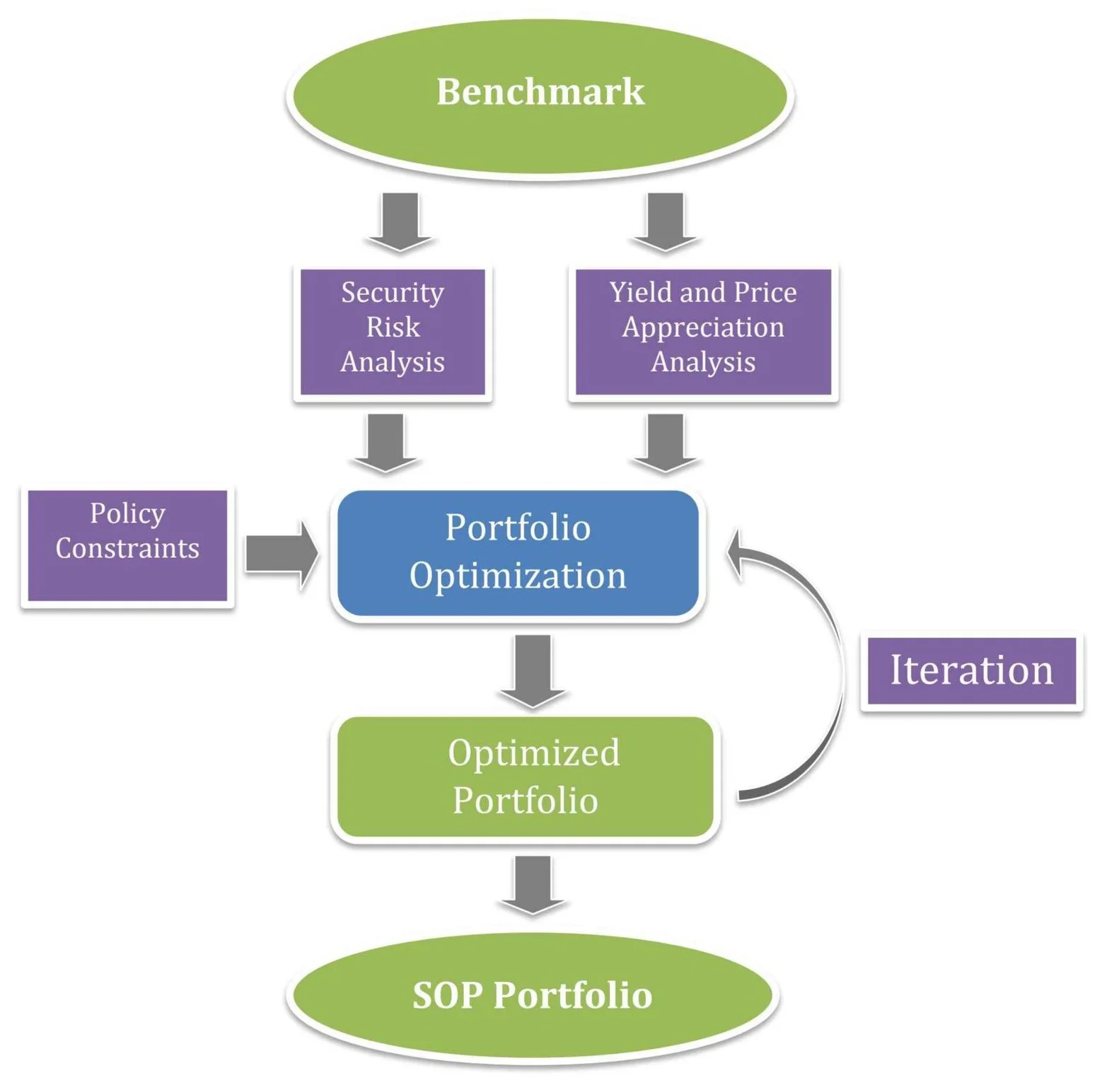 The portfolio optimization step is part of an iterative process where the resulting optimized portfolio may be re-optimized a number of times to achieve an acceptable risk/return trade-off.
